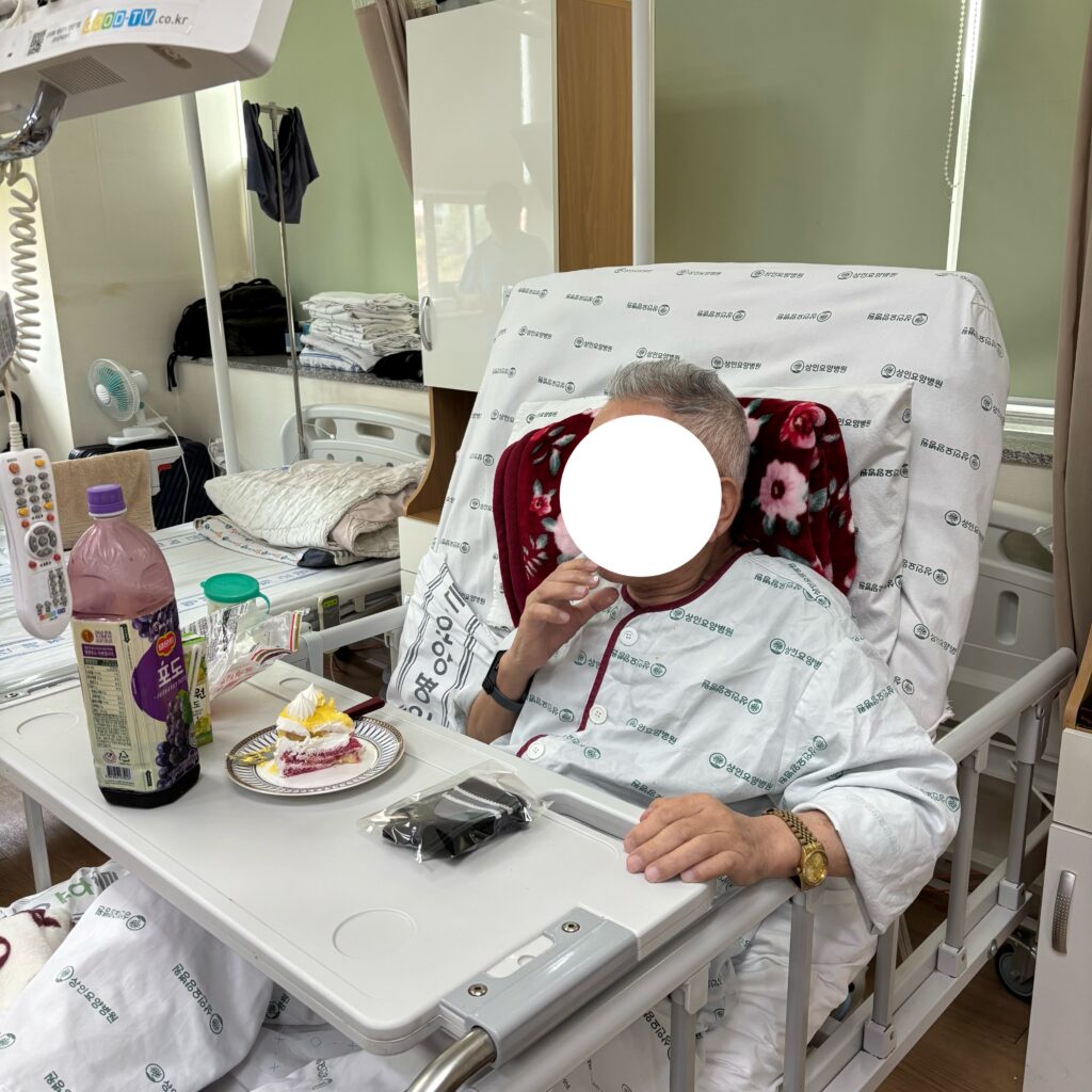 병상에서 축하해 드리기 위해 찾아갔는데요!
