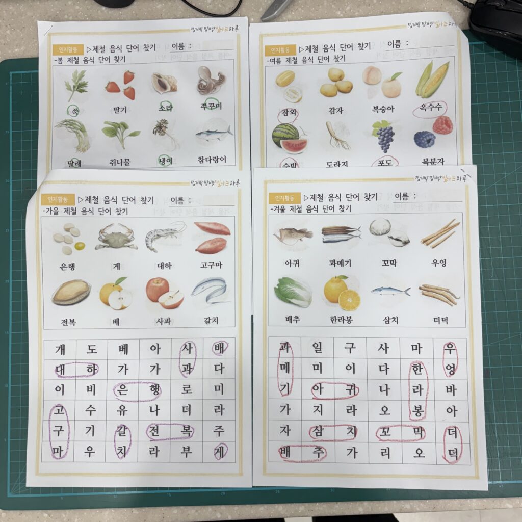 “오늘은 제철 음식 단어 찾기를 준비했어요~”
