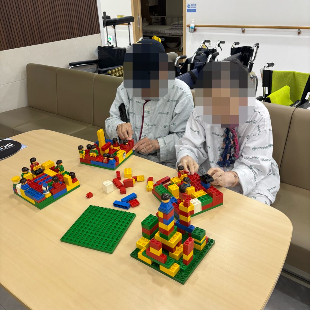 “이런 식으로 블록을 쌓고 끼워주시면 돼요~”