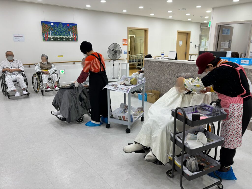 이‧미용 봉사가 있는 날인데요.